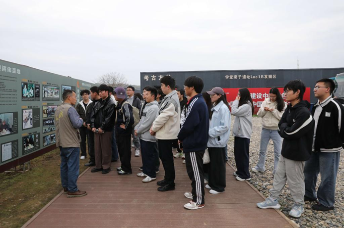 3月26日,历史文化与旅游学院组织2025级历史学(专升本)专业30余名学生,在教师党员孙浩、曹婷等带领下,赴郧阳区“郧县人”遗址考古基地开展实践教学活动。本次活动由学生党支部与历史学专业联合组织,通过实地观摩、专家讲解与互动体验,引导学生在触摸远古文明中坚定文化自信、锤炼专业本领,铸牢中华民族共同体意识。