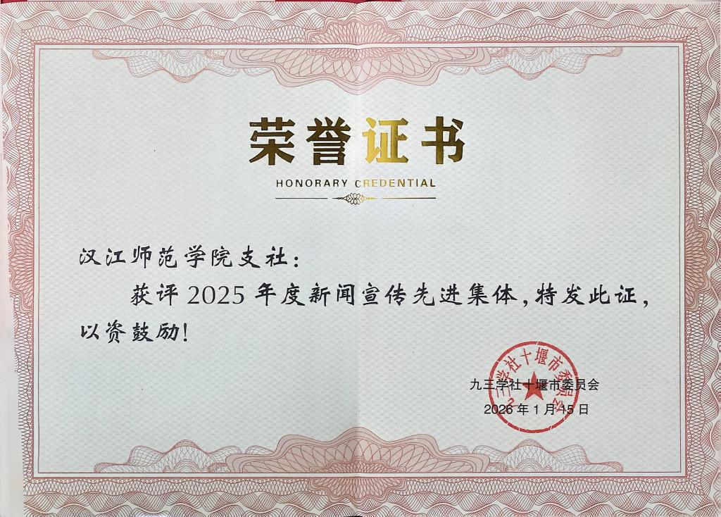 1月18日,九三学社十堰市委2025年度总结表彰大会在堰丰酒店召开。我校九三学社支社获评“2025年度新闻宣传先进集体”,支社主委王吉利获“2025年度社务工作先进个人”称号,副主委潘宣辰、社员吴文海获评“2025年度优秀社员”。